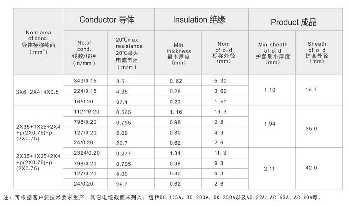 產(chǎn)品特性: 具有高柔軟、耐高溫、集動(dòng)力提供、信號(hào)控制、信號(hào)傳輸在一根電纜內(nèi)。